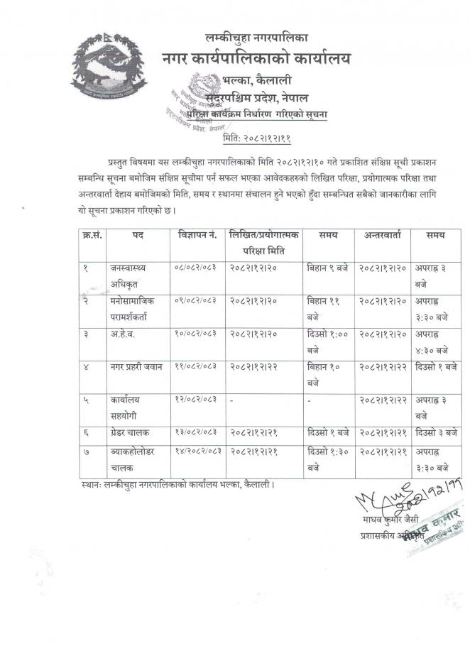 संक्षिप्त सूचीमा सफल आवेदकको परिक्षा सम्बन्धी सूचना