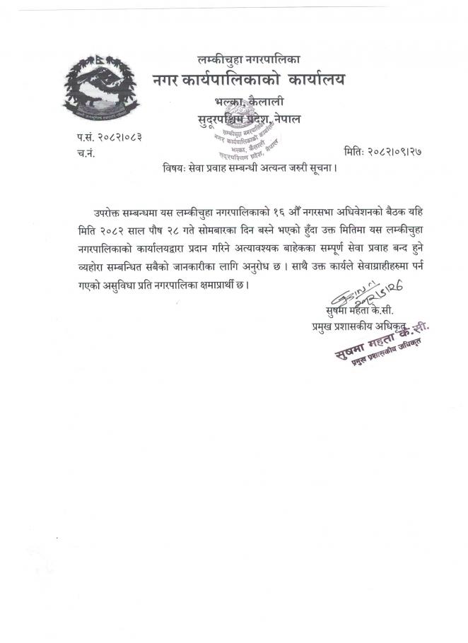 सेवा प्रवाह बन्द हुने सम्बन्धी सूचना
